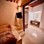 This apartment features a kitchen with such facilities as a refrigerator and a stovetop.